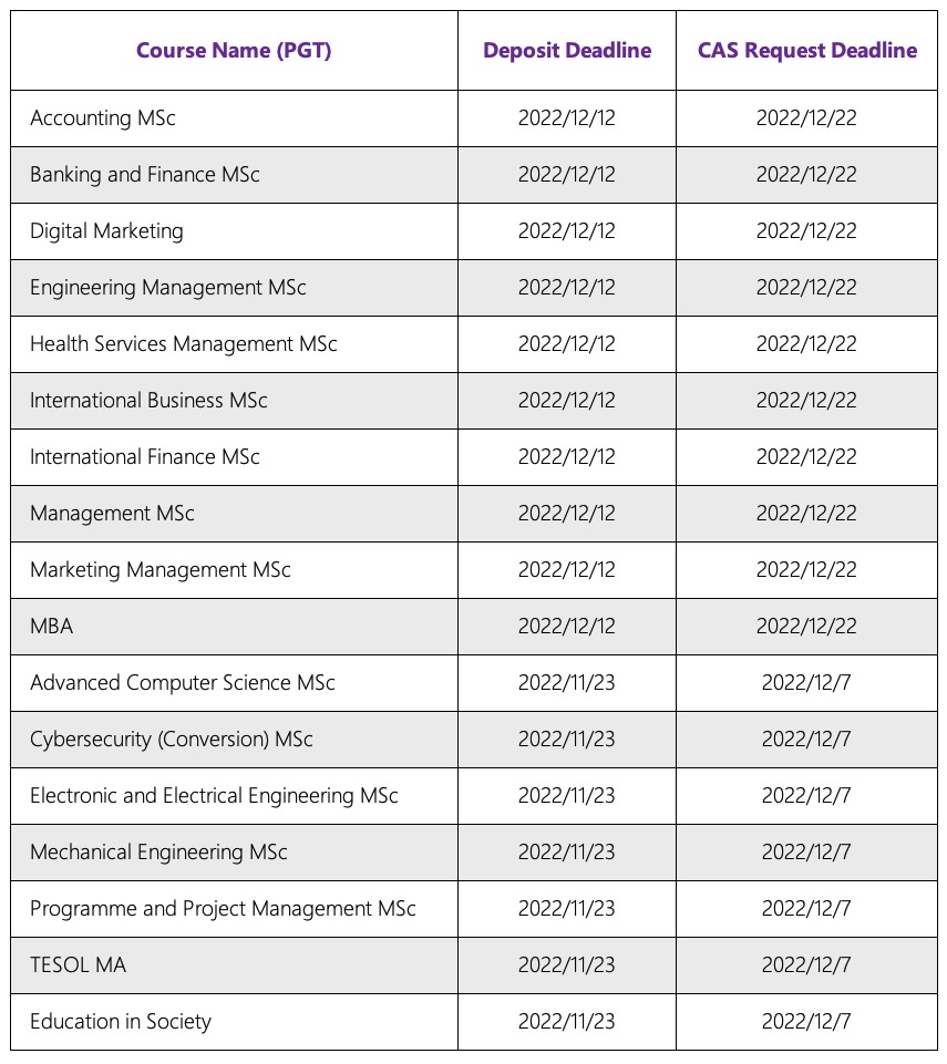 接學(xué)校緊急通知:切斯特大學(xué)2023年春季入學(xué)依舊可以申請,請查收部分熱門專業(yè)押金及CAS截止日期安排: