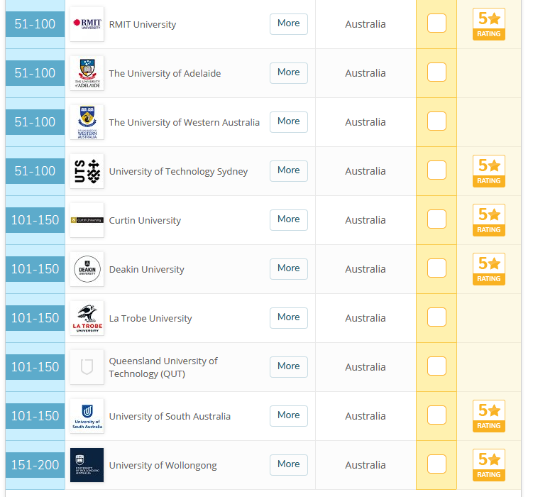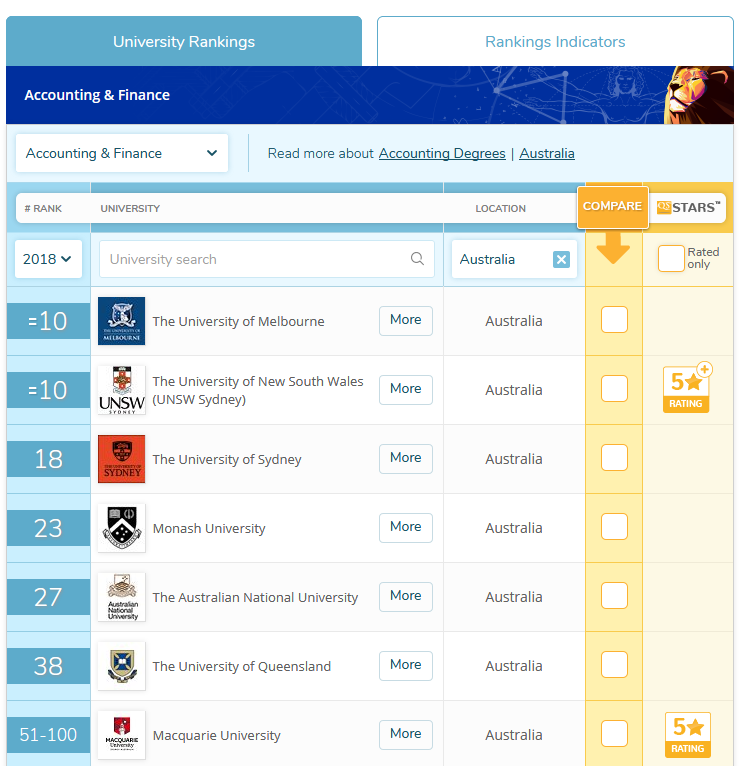 首先,給大家看一下澳洲金融專業(yè)有多強?請看下圖的2018-2019QS專業(yè)排名